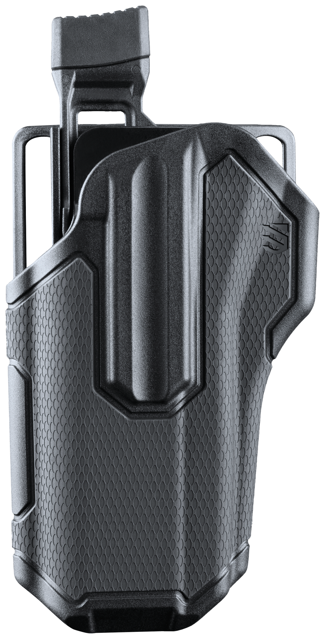 The active retention mechanism locks onto and secures onto our proprietary Rail Attachment Device (RAD), or specified weapon light, and not the frame of the handgun. An ergonomic design thumb release disengages the locking mechanism when drawing the handgun. This holster will be your 'go-to' for range day.